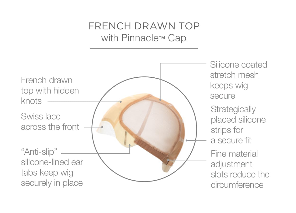 Expect styling ease with cuticle aligned 100% Remy hair. And expect great style: this classic collar-length page features all-over soft layers that blend seamlessly into a side swept bang. The French Drawn lace front monofilament top creates the appearance of a natural hairline for off-the-face styling. The 100% hand-tied base allows for natural movement.